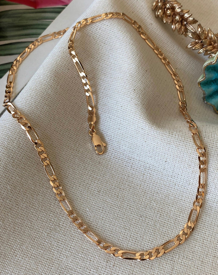 سلسلة فيجارو الوردية بتصميم متداخل يضفي لمسة عصرية أنيقة على إطلالتك اليومية. مطلية بالذهب عيار 18 مكفولة سنة لتغير اللون.