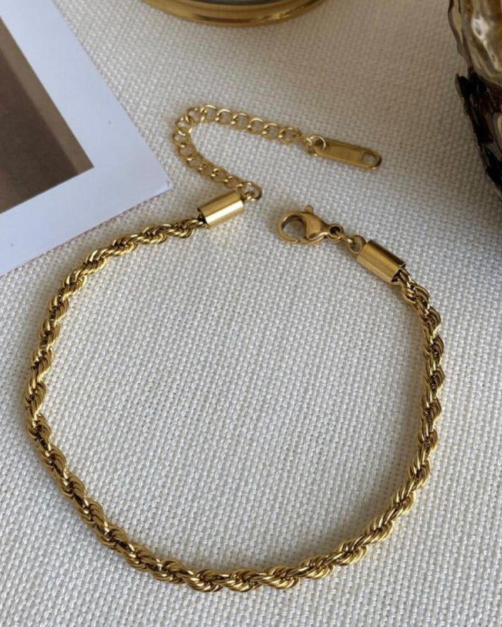 سوار أنيق بتصميم حبل ملتف ذهبي اللون يضفي لمسة كلاسيكية راقية على معصمك. مطلي بالذهب عيار 18 مكفول سنة لتغير اللون.
