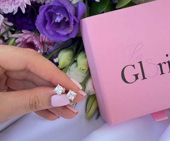 أقراط صغيرة بتصميم مكعبات شفافة تضفي لمسة راقية وبسيطة. مصقولة بدقة لتبرز بريق الحجر المتلألئ، مثالية للاستخدام اليومي أو المناسبات الخاصة. مطلية بالفضة عيار 925 مكفول سنة لتغير اللون.