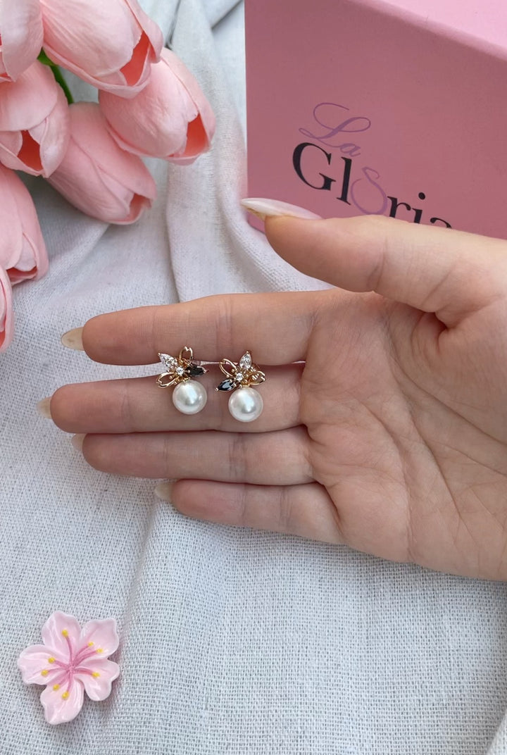 حلق صغير ودائري بتصميم أنيق يجمع بين لمسة اللؤلؤ الكلاسيكية وأجنحة ذهبية مزينة بأحجار كريستالية شفافة وسوداء تضفي بريقاً مميزاً. تركيب متزن يبرز جمال اللؤلؤ الطبيعي ويمنحه تألقاً راقياً يناسب الإطلالات النهارية والمسائية على حد سواء. مطلي بالذهب عيار 18 مكفول سنة لتغير اللون، مطلية بالذهب عيار 18 مكفولة سنة لتغير اللون