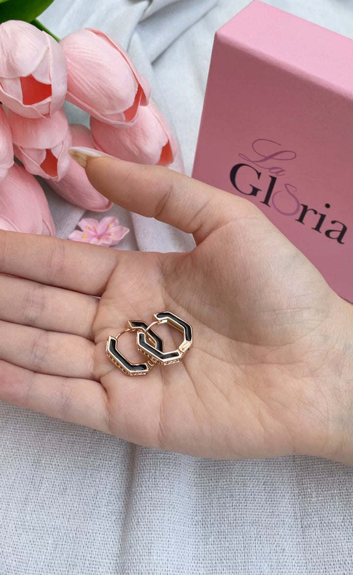 حلق أنيق مطلي بالذهب الوردي مزين بأحجار ستراس لامعة على شكل دائرة تضيف لمسة فخمة ورقيقة للمظهر، مطلية بالذهب عيار 18 مكفولة سنة لتغير اللون