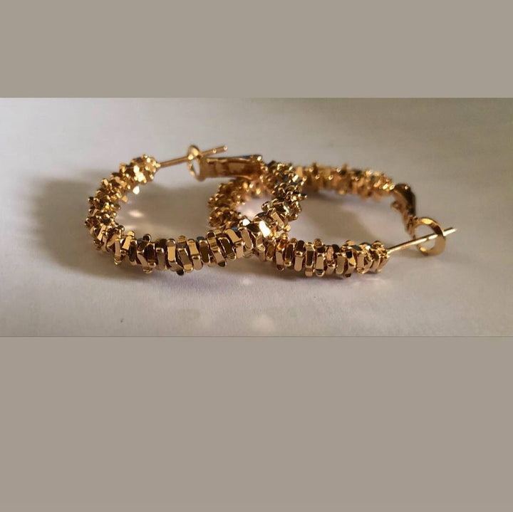 حلق دائري مطلي بالذهب مع تصميم متشابك يضفي لمسة عصرية وأنيقة للمظهر، مطلية بالذهب عيار 18 مكفولة سنة لتغير اللون