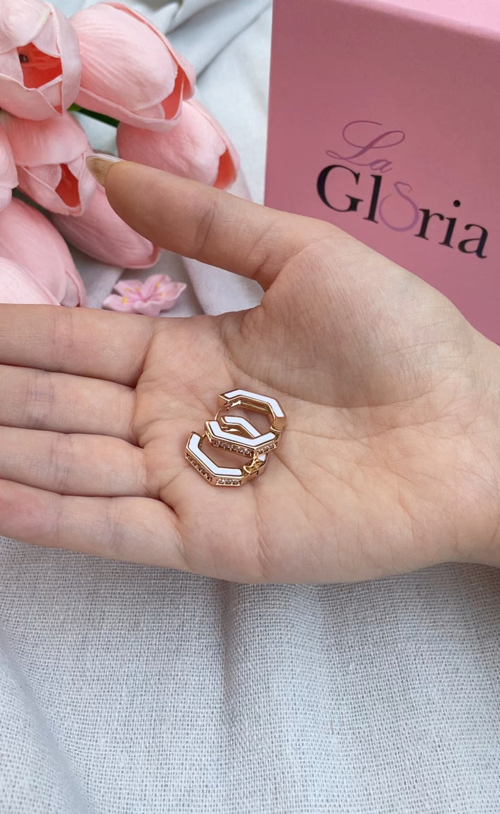 حلق أنيق مطلي بالذهب بتصميم مستطيل مفتوح بخطوط متوازية تضيف لمسة عصرية وفخمة للمظهر، مطلية بالذهب عيار 18 مكفولة سنة لتغير اللون