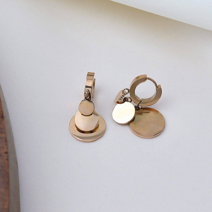 حلق أنيق مطلي بالذهب يتكون من دوائر متدلية بأحجام مختلفة، يضفي لمسة عصرية وبسيطة على المظهر، مطلية بالذهب عيار 18 مكفولة سنة لتغير اللون