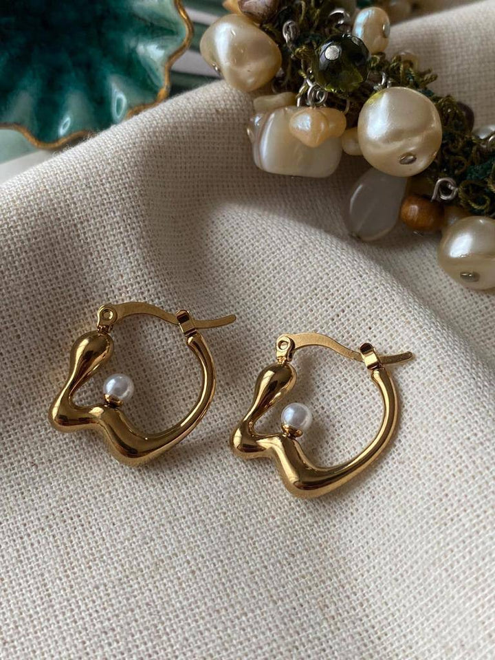 حلق أنيق مطلي بالذهب مع تصميم غير منتظم وخرزة لؤلؤ صغيرة تضيف لمسة فخمة وعصرية.