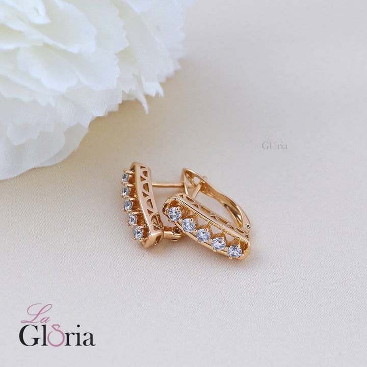 حلق أنيق مطلي بالذهب مزين بأحجار كريستالية شفافة تضفي لمسة فخمة وعصرية على المظهر، مطلية بالذهب عيار 18 مكفولة سنة لتغير اللون