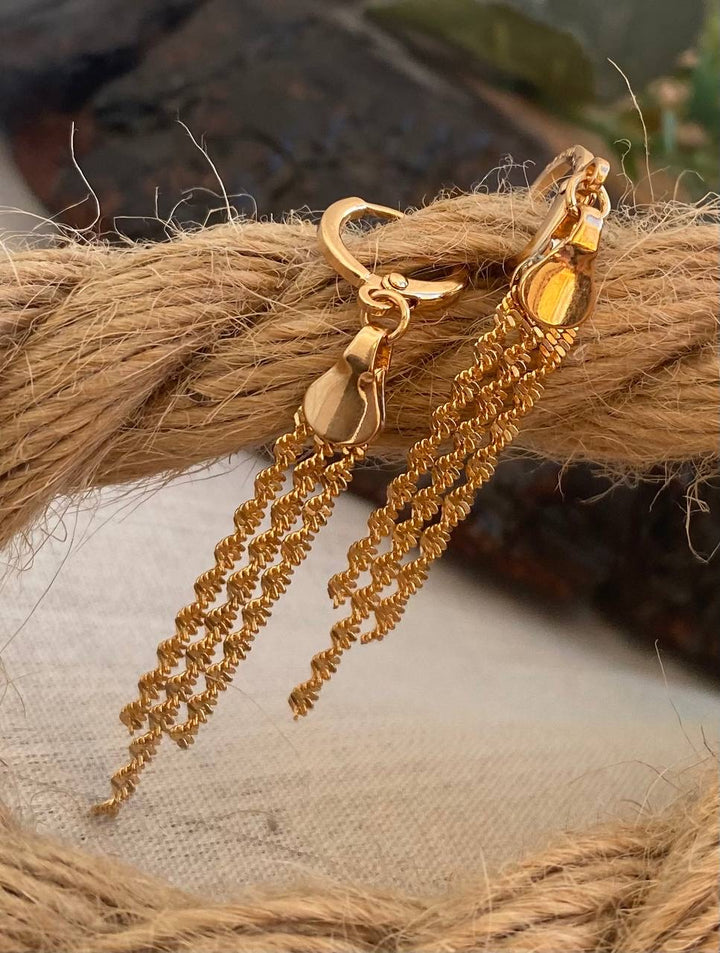 حلق أنيق مطلي بالذهب يتميز بشراريب متدلية بتصميم ملتف يضفي حركة وجاذبية على المظهر، مطلية بالذهب عيار 18 مكفولة سنة لتغير اللون