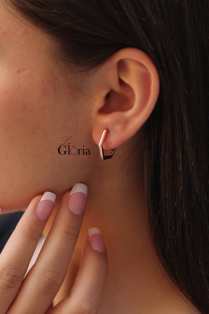 حلق أنيق بتصميم هندسي بسيط مطلي بالذهب الوردي، يضفي لمسة عصرية وراقية على الإطلالة اليومية، مطلية بالذهب عيار 18 مكفولة سنة لتغير اللون