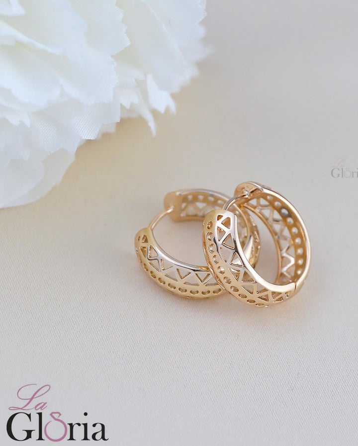 حلق صغير بتصميم هوب أنيق مزين بنقوش هندسية دقيقة تضفي لمسة فنية فريدة. ذو لون ذهبي دافئ، يجمع بين البساطة والتفرد في آن واحد، مناسب للارتداء اليومي والمناسبات الخاصة. مطلي بالذهب عيار 18 مكفول سنة لتغير اللون.