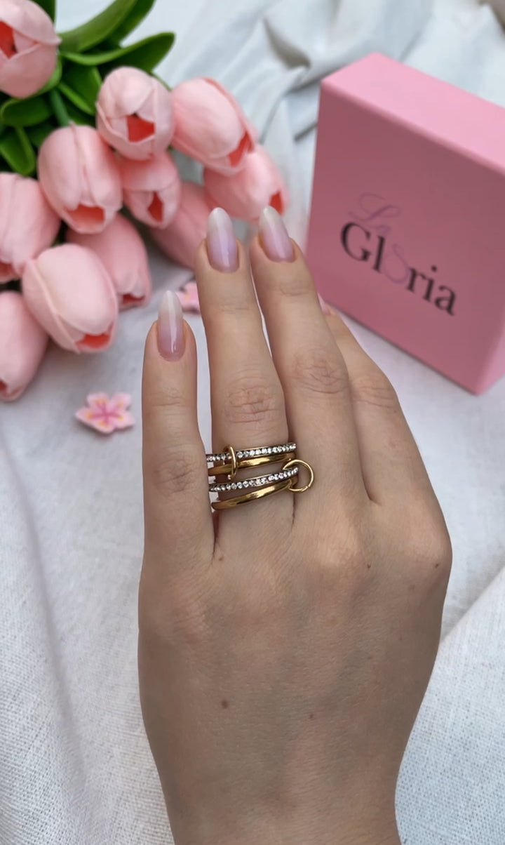 خاتم بتصميم عصري أنيق يتكون من ثلاث قطع متصلة بأسلوب مميز، حيث يبرز الخاتم بلونه الذهبي اللامع مع تزيين قطعتين منه بفصوص صغيرة براقة تضفي لمسة من الفخامة والرقي. يتوسط التصميم قطع دائرية تضيف بعداً ثلاثي الأبعاد تجعل الخاتم مثالي للإطلالات العصرية والكاجوال. عريض التصميم يمنح شعوراً بالامتلاء دون الثقل، مما يجعله خياراً جذاباً ومريحاً للارتداء اليومي. مطلي بالذهب عيار 18 مكفول سنة لتغير اللون.