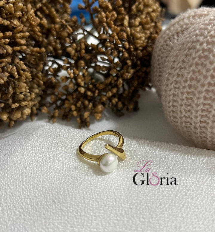 خاتم ذهبي ناعم يتميز بتصميم مفتوح يلتف حول الإصبع بشكل انسيابي وأنيق، مزين بلؤلؤة بيضاء دائرية تضيف لمسة من الرقي والأنوثة. الخاتم ذو شكل رفيع وبسيط مع لمسة عصرية تجمع بين الأناقة الكلاسيكية والتفرد في التصميم. مطلي بالذهب عيار 18 مكفول سنة لتغير اللون.