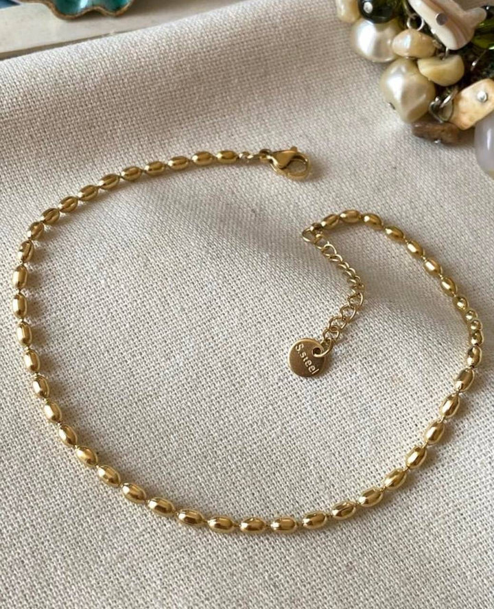 خلخال أنيق يتكون من سلسلة من الكرات المعدنية الصغيرة ذات التصميم الإهليجي والمحكم، يضفي لمسة رقيقة وراقية على الكاحل. يتميز بلونه الذهبي الدافئ ومشابك قابلة للتعديل تناسب مختلف الأحجام. مطلي بالذهب عيار 18 مكفول سنة لتغير اللون.