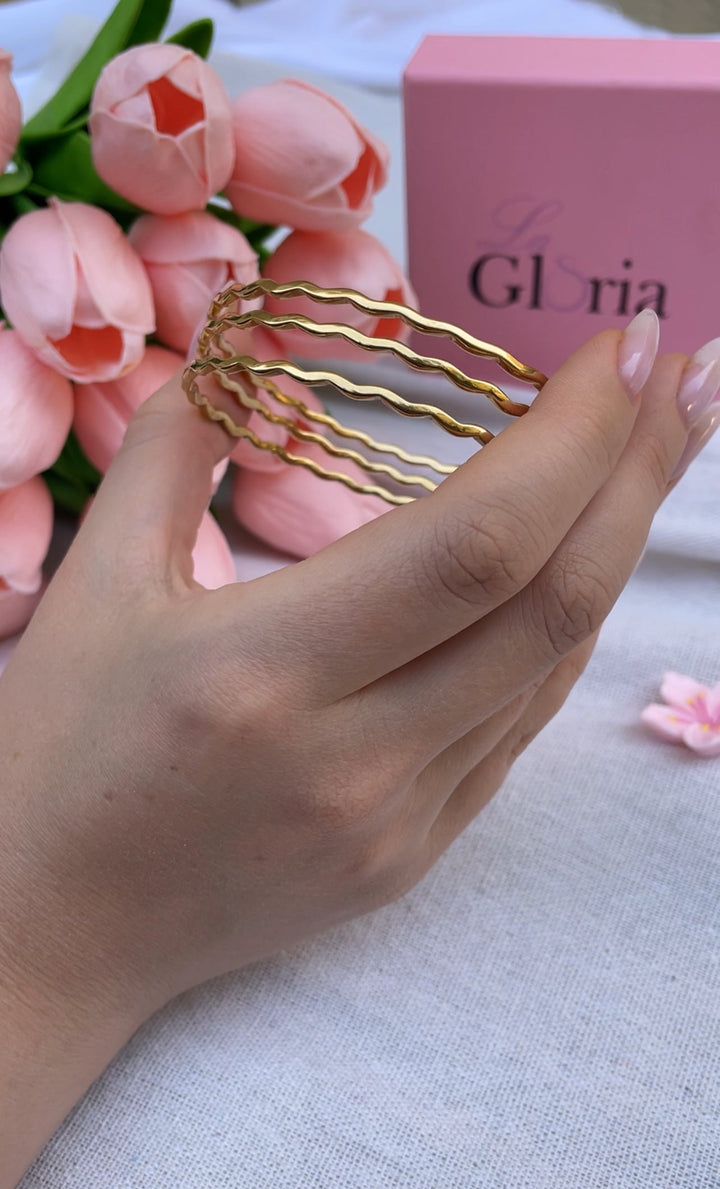 سوار أنيق بتصميم موجي رفيع مطلي بالذهب الأصفر اللامع، يضفي لمسة عصرية وجذابة على إطلالتك. مطلي بالذهب عيار 18 مكفول سنة لتغير اللون.