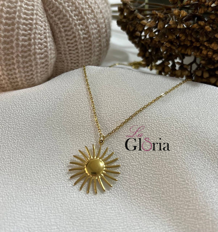 سلسلة أنيقة مزينة بقلادة على شكل شمس متوهجة تعكس إشراقة النهار وتضفي لمسة من الحيوية والتفاؤل على مظهرك. مطلية بالذهب عيار 18 مكفولة سنة لتغير اللون.