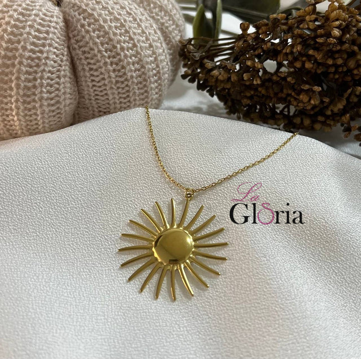 سلسلة أنيقة مزينة بقلادة على شكل الشمس بأشعة متفرقة تعكس الطاقة والحيوية. تصميم أنيق يضفي لمسة مشرقة على إطلالتك اليومية. مطلية بالذهب عيار 18 مكفولة سنة لتغير اللون.