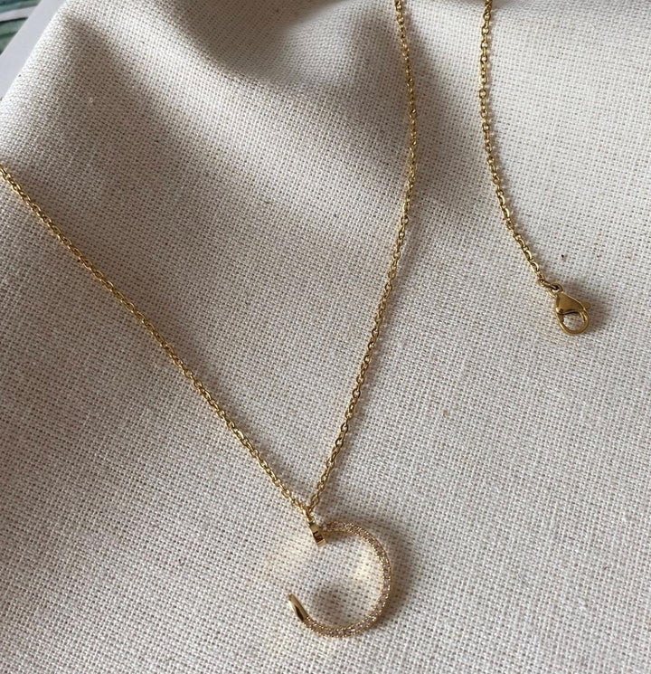 سلسلة أنيقة بتصميم مسمار مفتوح مزين بأحجار براقة تضيف لمسة فاخرة وعصرية على مظهرك. مطلية بالذهب عيار 18 مكفولة سنة لتغير اللون.