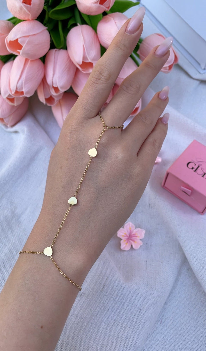 سوار رقيق مطلي بالذهب عيار 18 مع تصميم متصل بثلاث قلوب صغيرة أنيقة. مطلي بالذهب عيار 18 مكفول سنة لتغير اللون.