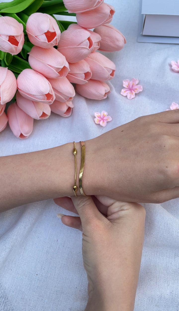 سوار ذهبي ناعم بتصميم بسيط وأنيق يضفي لمسة راقية على المعصم. مطلي بالذهب عيار 18 مكفول سنة لتغير اللون.
