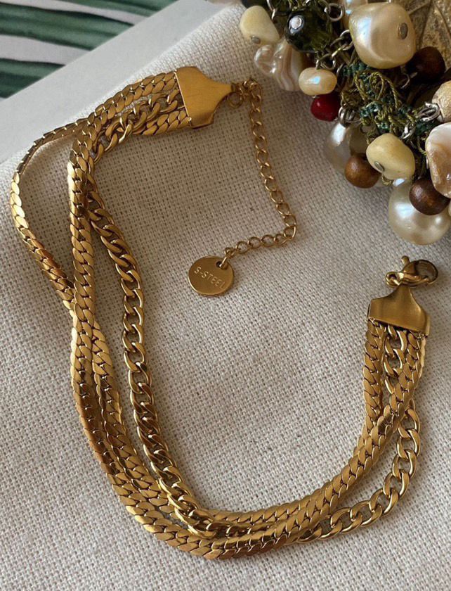 سوار أنيق متعدد السلاسل بلون ذهبي لامع يضفي لمسة فاخرة وعصرية على معصمك. مطلي بالذهب عيار 18 مكفول سنة لتغير اللون.