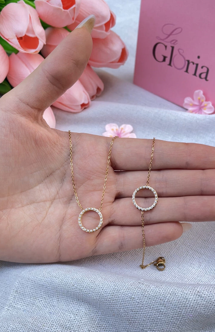 طقم اللولو الناعم يتألق بتناسق رقيق وأسلوب فريد يجمع بين البساطة والأناقة، حيث تكتمل القطع بتناغم مثالي يعكس ذوق رفيع ونعومة لا تضاهى. السلسلة الذهبية رفيعة بخطوطها الناعمة تحمل قلادة دائرية مرصعة بحبات اللؤلؤ الدقيق الذي يضفي لمسة من الرقي والنعومة. السوار ينسجم بسلاسة مع السلسلة من خلال التصميم ذاته، دائرة مطوقة بلآلئ صغيرة تتلألأ بأناقة على المعصم، لتكمل الإطلالة بأناقة لا تقاوم. الأحمر الذهبي يبرز جمال اللؤلؤ الأبيض التي تضيف توازنًا لونيًا هادئًا ومميزاً. مطلي بالذهب عيار 18 مكفول سنة لتغير اللون.
